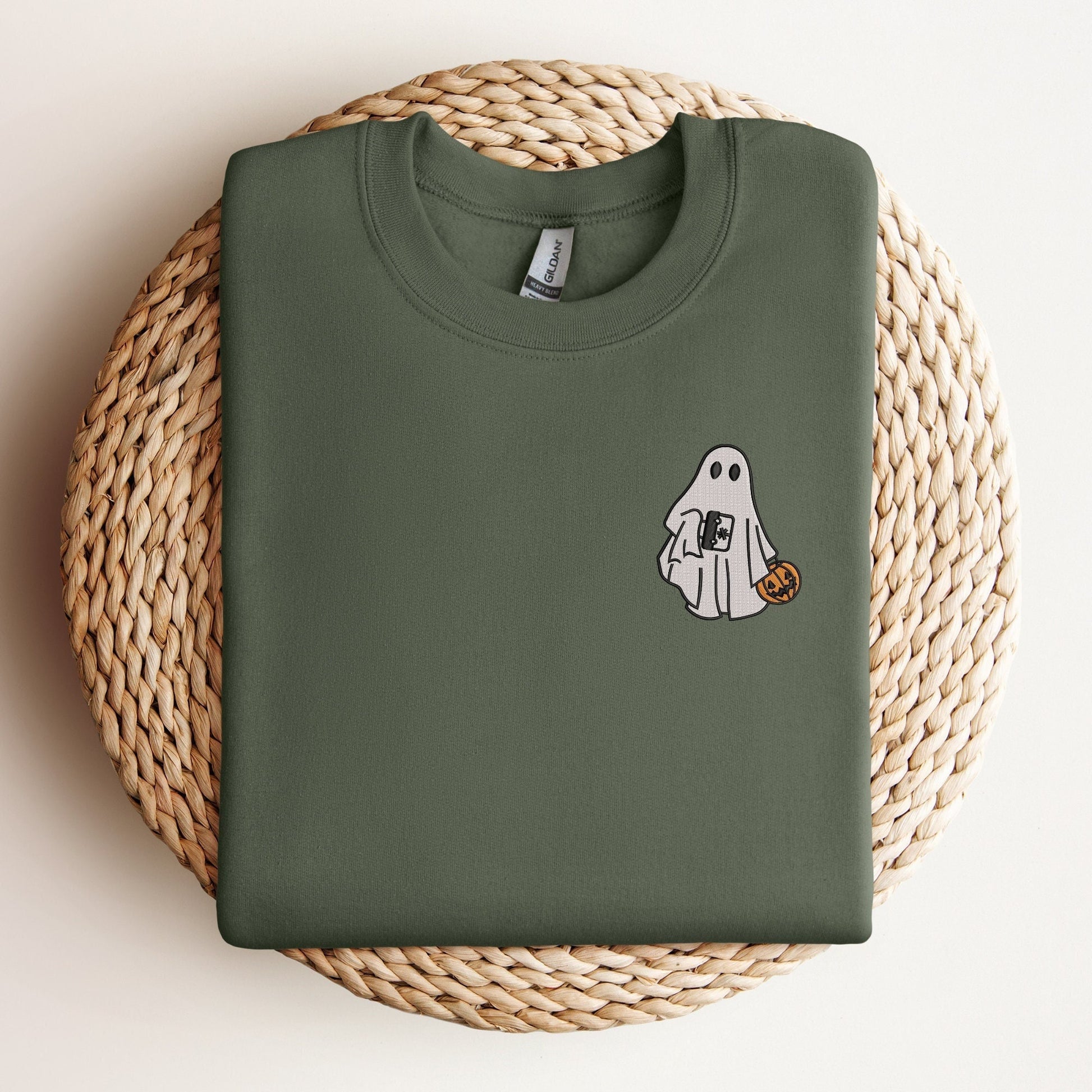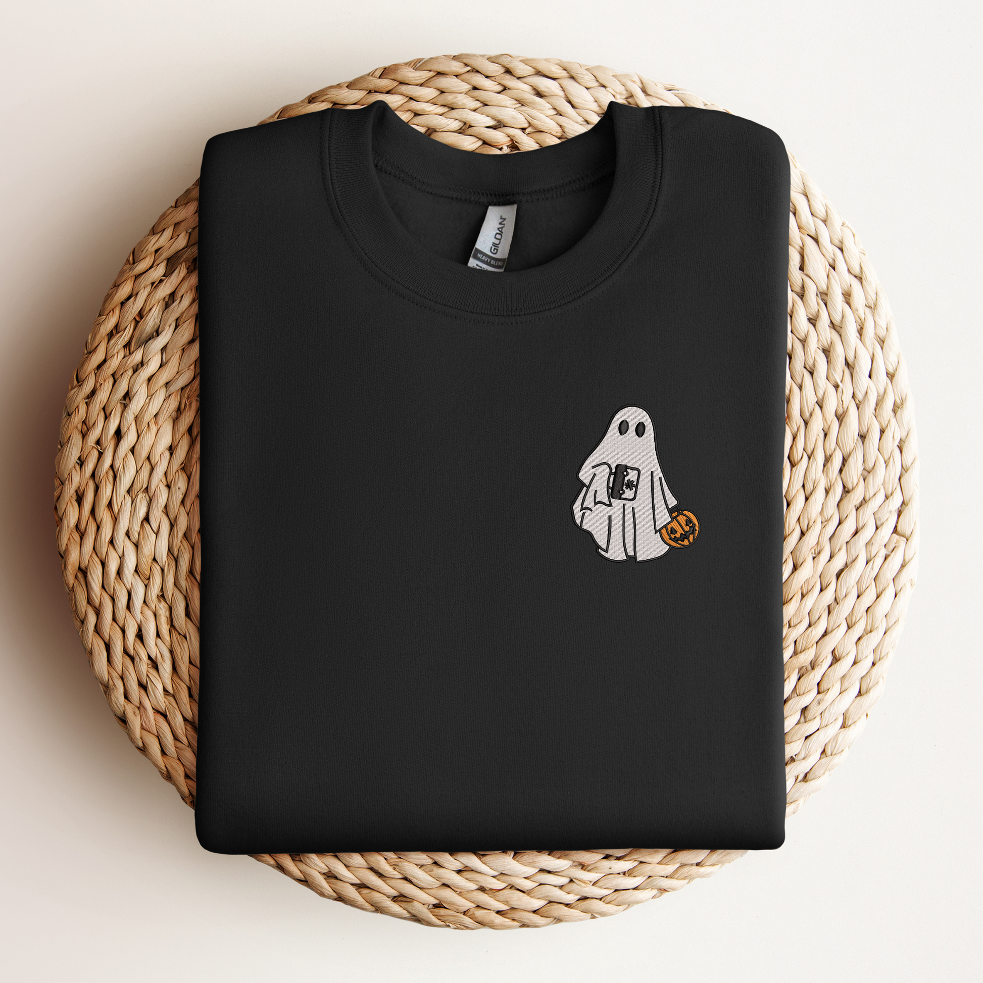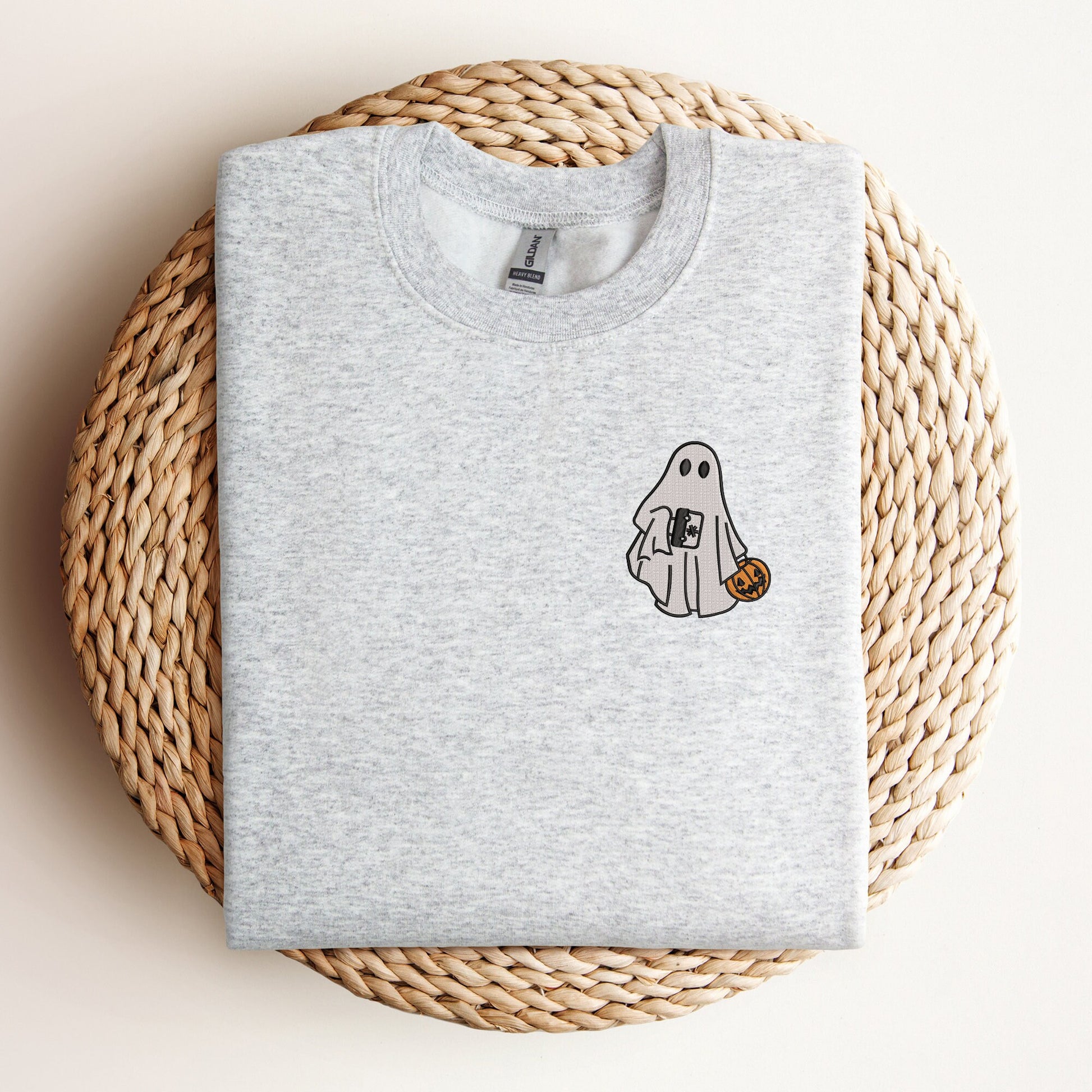 EMT Ghost Halloween Sweatshirt – Cute Embroidered First Responder Sweater with Medical Bag